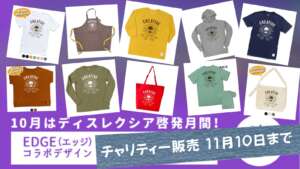 10月ディスレクシア月間チャリティー販売 クリエイティブをモチーフにしたデザイン! 17時間 ago in カルーセル, TOPICS 37Views 0Likes 10月はディスレクシア啓発月間! エッジコラボデザイン商品チャリティー販売! エッジコラボデザインの商品を購入すると、料金の一部がエッジに寄付されます。ディスレクシアのクリエイティブな才能をモチーフにしたTシャツ類を、スタッフも愛用、イベントで着用しています。 チャリティー商品紹介ページ https://jammin.co.jp/special_charity/edge2025/ チャリティー商品一覧 https://jammin.co.jp/c/charityfor/edge2025/