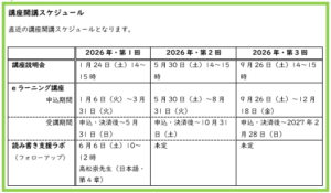2026年講座開講スケジュール 2日 ago in 読み書き困難指導・支援講座 49Views 0Likes 読み書き困難指導・支援講座 2026年講座開講スケジュール ご不明な点などございましたら、下記までご連絡ください。 -------- お問い合わせ先 -------- 認定NPO法人 エッジ 支援者養成講座 事務局 読み書き困難指導・支援講座 📩 edge-yomikaki.support@npo-edge.jp(担当:髙尾・坂井) 対応時間:平日15~18時 ※土・日・祝日はお休みを頂いております。