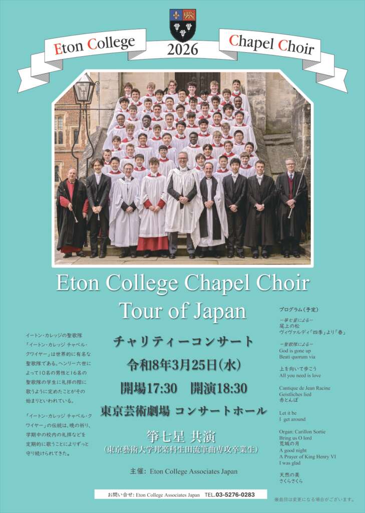 エッジは25年間にわたり、英国の先進的な支援事例を参考に、日本でのディスレクシア(読み書き困難)啓発・支援活動を続けてまいりました。長年の英国とのご縁により、このコンサートのご招待券をイートンカレッジ日本事務所からエッジに寄贈していただきました。