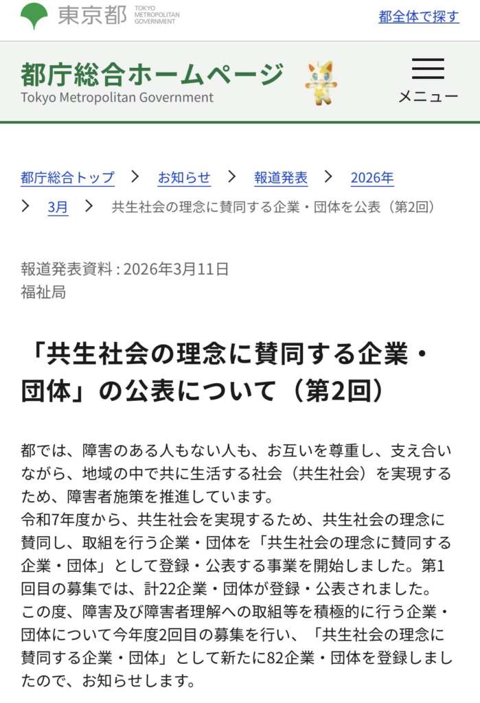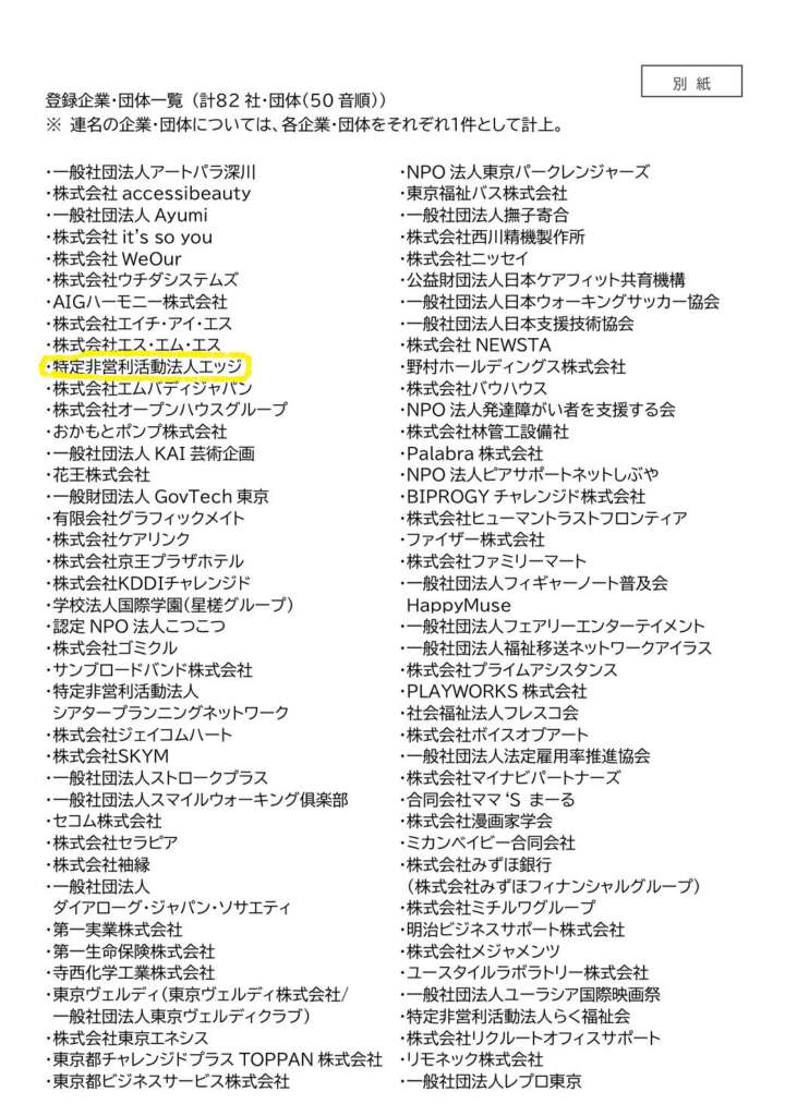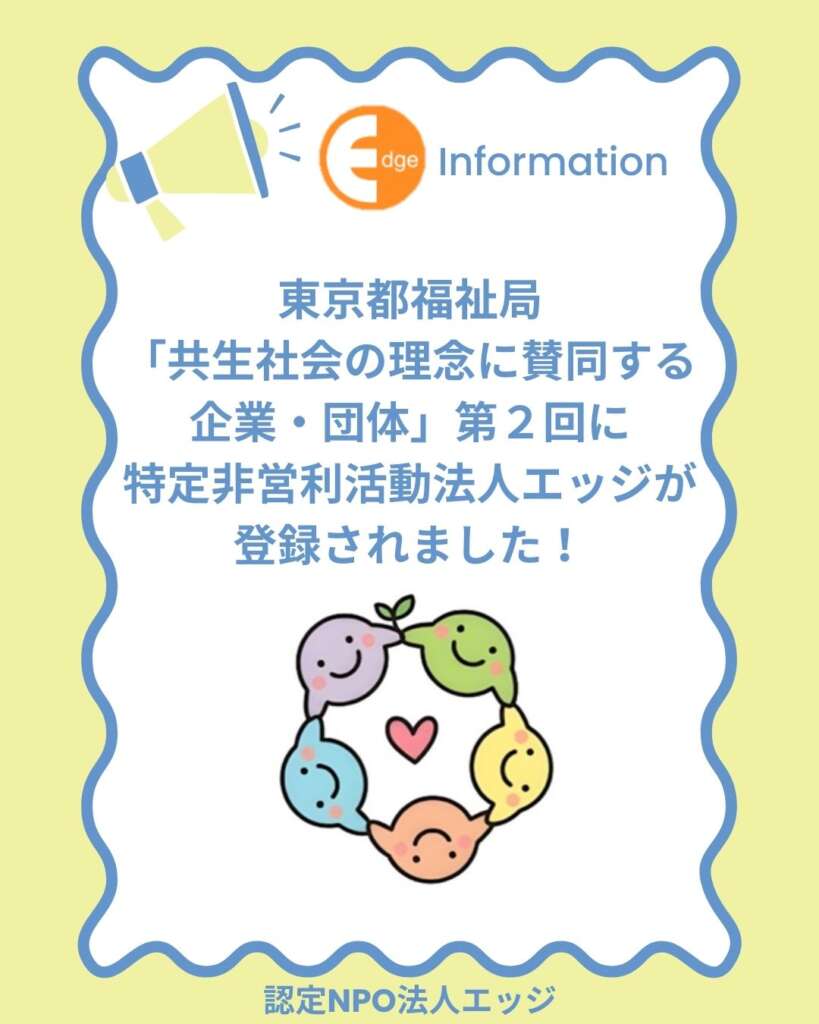 東京都福祉局「共生社会の理念に賛同する企業・団体」第2回に特定非営利活動法人エッジが登録されました!
