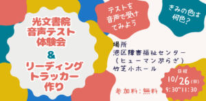 光文書院音声テスト(国語)体験会 &リーディングトラッカーづくり (文部科学省委託事業・音声教材BEAM イベント)10月26日(日)9:30~11:30 集合9:20会場:港区ヒューマンぷらざ (東京都港区芝1-8-23障害保健福祉センター)